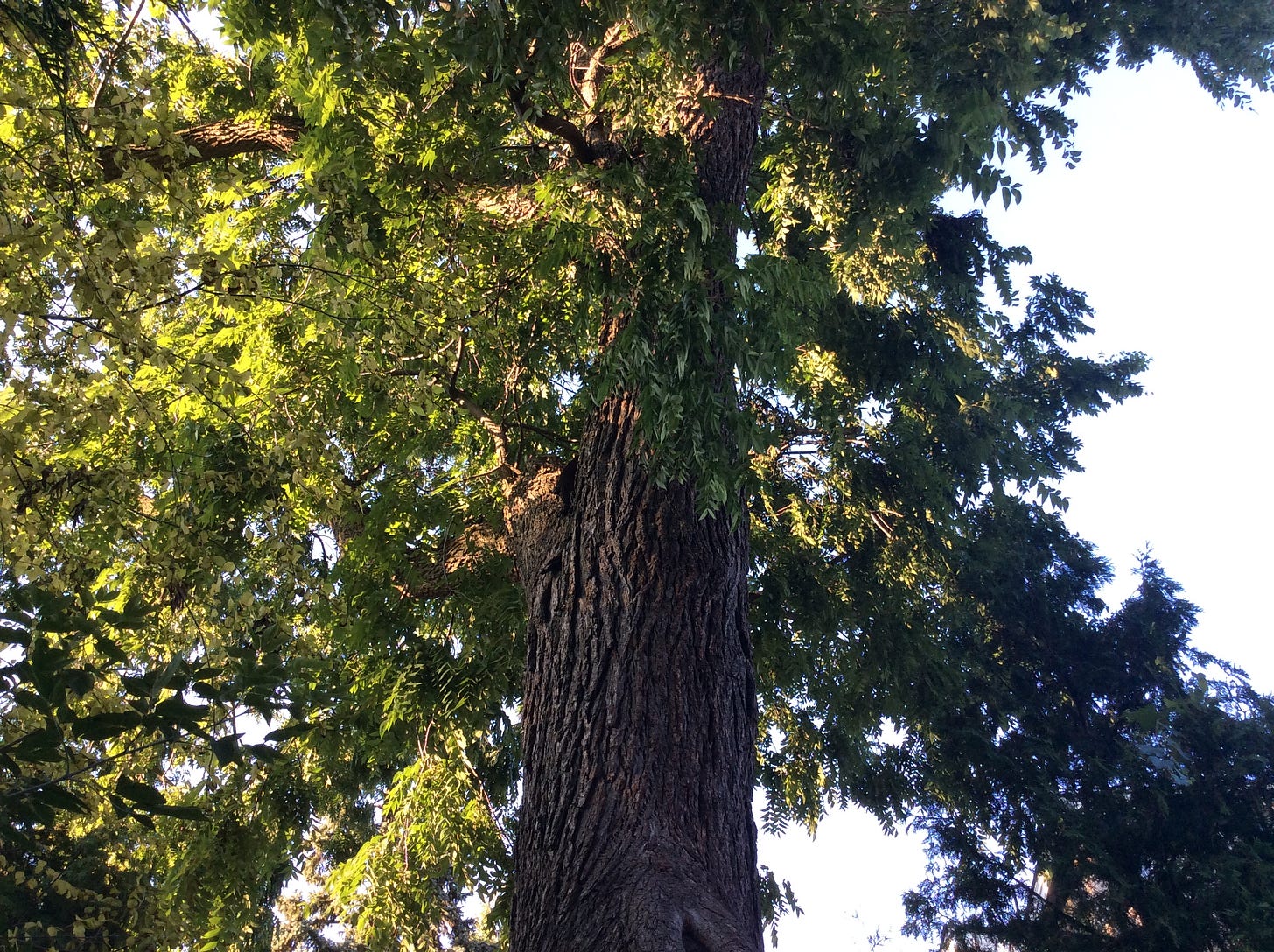 In a backyard corner of our family home (now owned by my daughter and her husband) stands a giant black walnut tree. Its estimated height is 60 to 80 feet and it brings to mind the towering elm trees which were prevalent in my childhood, and which we watched disappear one by one with Dutch Elm disease.